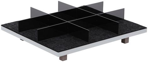 Richten Sie Ihren Kleiderschrank mit diesem Schubkasteneinsatz von ONDEGA perfekt ein und sorgen Sie für mehr Ordnung. Das anthrazitfarbene Modell ist für alle schmalen Laden der Serie UNIT geeignet. Es ist aus Plexiglas gefertigt und mit einer Filzeinlage sowie mit doppeltem Boden versehen. Insgesamt neun Fächer bieten Ihnen somit einen perfekten Überblick über Socken, Unterwäsche und sonstige Kleinigkeiten.